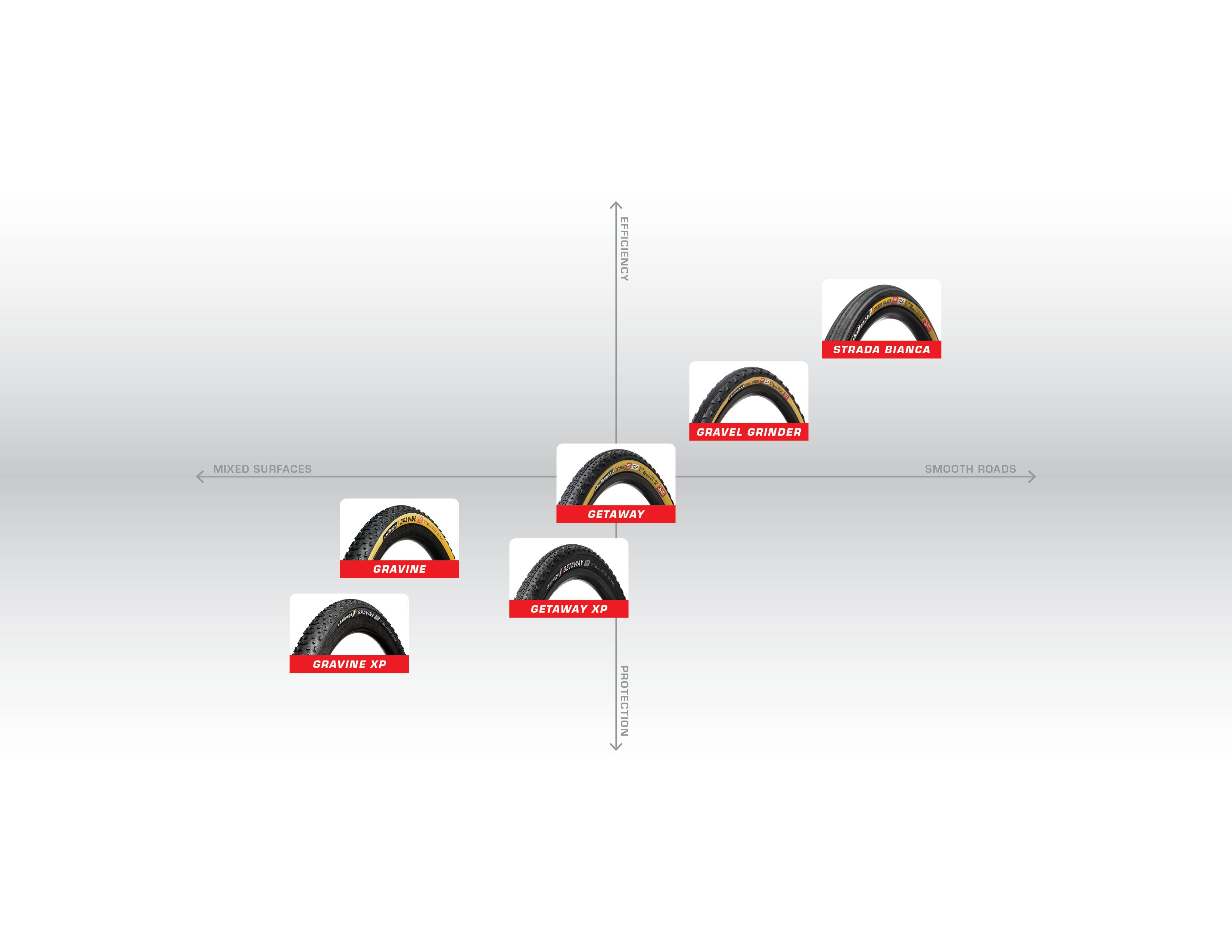 XP stands for extra protection. The tires maintain the supple feel of handmade construction with the addition of enhanced sidewall protection. This offers great resistance to punctures when facing chunky gravel and loose stones. Our Pro Says: “The Getaway XP are a good option for courses with a huge variety of terrain, as they are fast and handle well, but have increased puncture protection. The durable construction does add weight over the Getaway, but if a course makes you worry about punctures, then Getaway XP is my selection. The Gravine XP allows me to push my gravel bike to its limits with confidence - it's a tire I can trust in the worst conditions!"